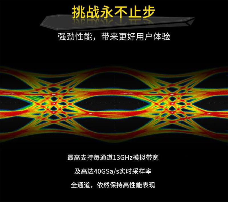 DS80000 系列提供最高 13 GHz 模擬帶 寬,最高 40 GSa/s 實時采樣率,實時模式下最高 500,000 wfms/s,單通道存儲深度高達 4 Gpts,支持多 種協議一致性分析功能