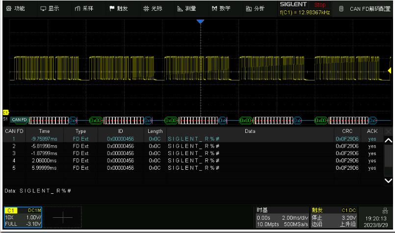 新款SDS1000X HD在保持標配IIC、SPI、UART、CAN、LIN的基礎上,還新增標配FlexRay(僅解碼)與CAN FD(僅解碼)。FlexRay是一種用于汽車的高速的、可確定性的,具備故障容錯能力的總線技術,它將事件觸發和時間觸發兩種方式相結合,具有高效的網絡利用率和系統靈活性特點,而CAN FD協議作為一個新興的車載網絡技術具備低成本、高可靠性、高傳輸速率等優點,廣泛應用于動力、底盤、安全系統等。