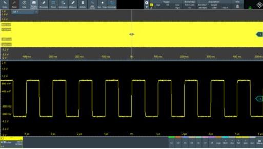 全帶寬垂直縮放至500uV/div,最高偏移范圍為5V;