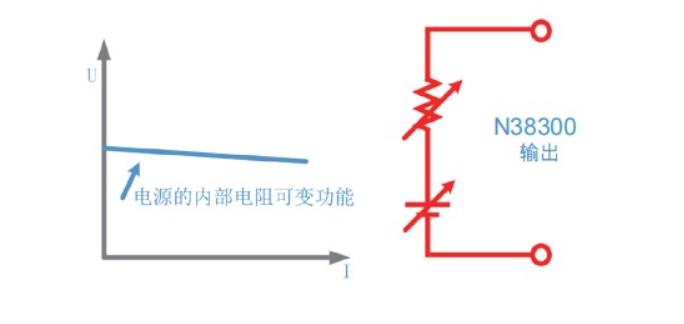 N38300系列可以設定電壓值,模擬內阻值。根據相應的輸出電流值,使輸出電壓隨著所設定的電阻值下降,簡易地模擬二次電池、燃料電池、超級電容等的內部電阻。
