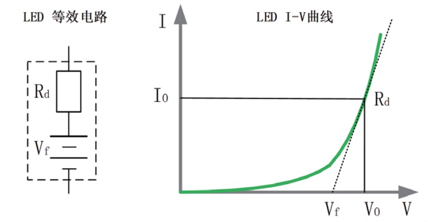 LED電源是恒流源,其輸出電壓有一段可調(diào)范圍且大于LED的導(dǎo)通電壓,輸出電流穩(wěn)定,不能大于LED額定電流,否則會(huì)加速LED衰老損壞。由LED等效電路可知,LED等效為電阻Rd與電壓源Vf的串聯(lián),其I-V曲線等效于真實(shí)LED非線性I-V曲線在工作點(diǎn)(Vo,Io)處的切線,常規(guī)的電子負(fù)載采用CR或者CV模式并不適合LED電源的測(cè)試需求。