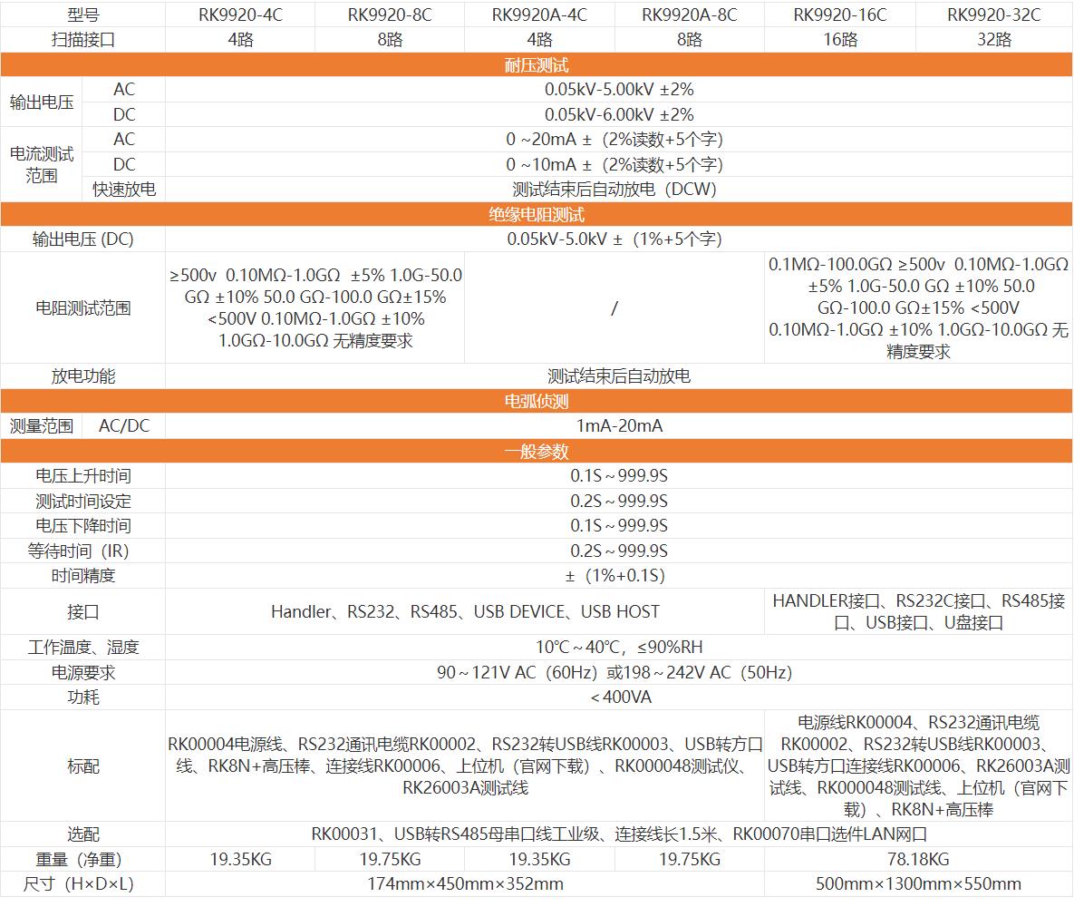 4、自帶4路(RK9920-4C)、8路(RK9920-8C)、自帶16路(RK9920-16C)、32路掃描接口(RK9920-32C)