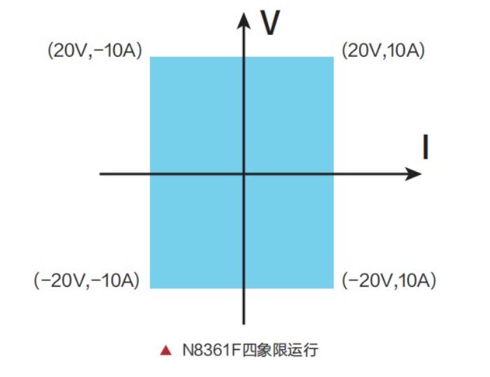 雙極性直流電源的獨特之處在于引入了正負極性開關。通過調整開關的位置,可以選擇輸出正電壓或負電壓,滿足電路測試的需求。結合N8361F是電流雙向流動設計,既可吸入電流又可輸出電流,N8361F可實現四象限運行。