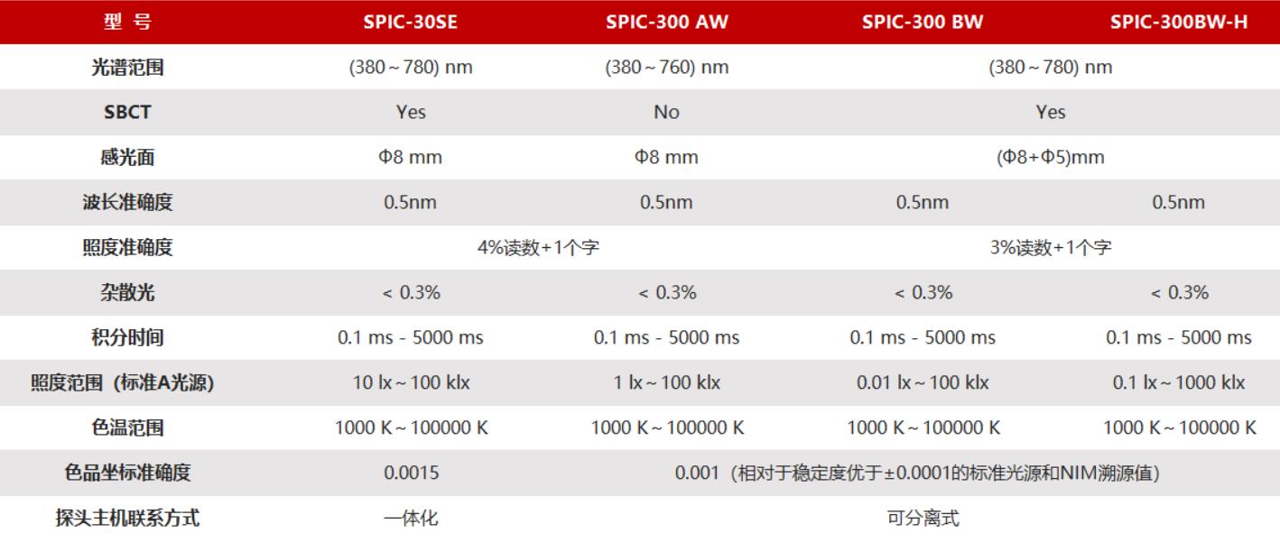 SPIC-300可測量項目包括光照度,光譜輻射照度,節律因子,相對光譜功率分布,色品坐標,相關色溫,顯色指數等光度色度學量值。