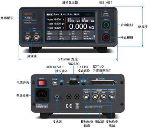 TH2692體積小巧,標(biāo)準(zhǔn)2U高度,前后測試端,標(biāo)配了RS232C、USB DEVICE、USB HOST、EXT.I/O、Analog等接口,無論上架測試、測試臺還是自動化產(chǎn)線集成,都游刃有余。