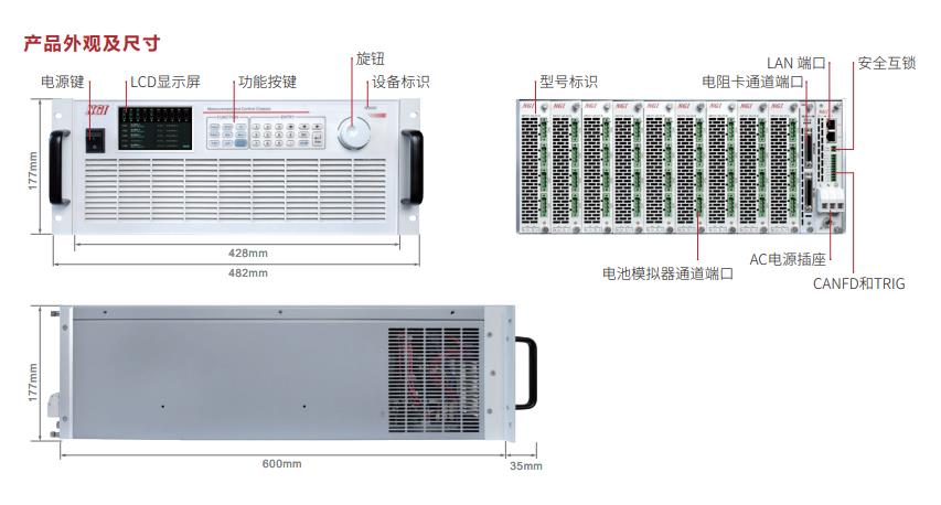 N9000系列為一款多通道模塊化測控平臺,支持多種測試測量模塊,標準19英寸4U機箱可集成36通道單體電芯模擬+36通道電池故障模擬+36通道溫度模擬,有效節省用戶空間。同時,電池模擬單模塊4通道,溫度模擬模塊單模塊12/24/36通道可選,產品型號豐富,用戶可根據實際需求進行模塊化選型,且方便后續拓展。