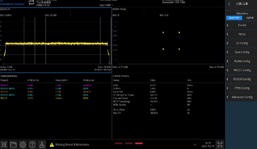 包括上行鏈路與下行鏈路解調,解調后可觀察信號頻域信息和星座圖