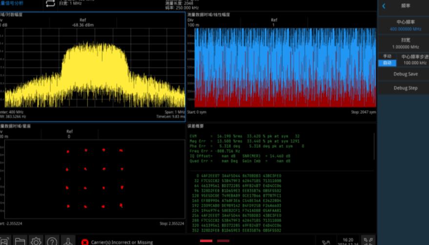 進行解調分析,可分解出信號的質量,EVM的誤差矢量等