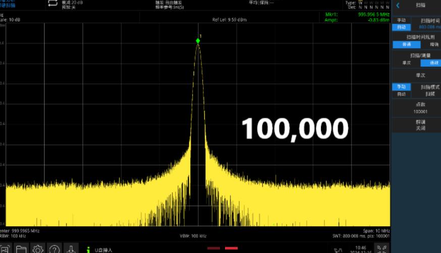 UTS7000A系列信號分析儀,最大可測量頻率40GHz,支持交流和直流耦合,直流耦合狀態最小可測量2Hz,全頻段頻率計精度低至0.01Hz。顯示平均噪聲電平為-166dBm,相位噪聲在1GHz載波,偏移10kHz下為-108dBc,掃描點