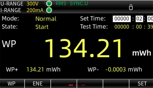 支持平均有功功率積分和電流積分 積分時可以顯示積分值和積分時間。 共有三種積分模式, 即手動積分、標準積分(Normal)和連續積分(Continuous)。