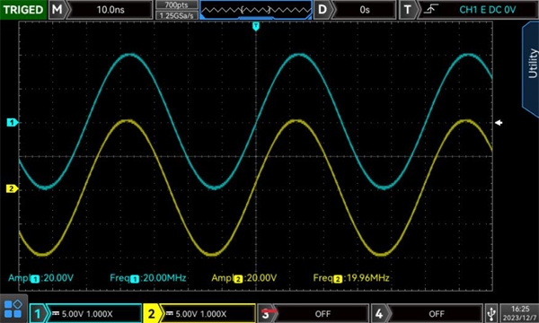 在20MHz高頻率下仍能保證雙通道20Vpp滿幅度輸出