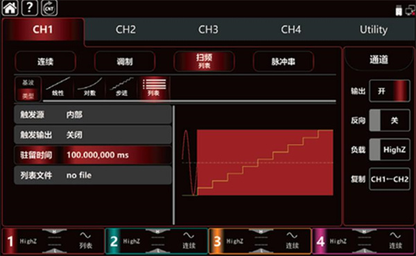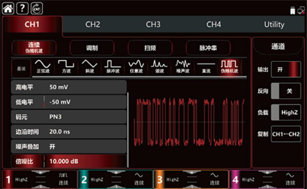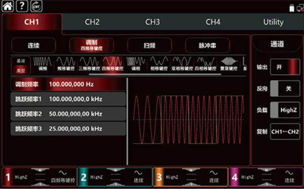 UTG9000T系列函數/任意波形發生器,使用DDS直接數字頻率合成技術,可生成高精度、穩定、純凈、低失真的信號,還能提供高頻率且具有快速上升沿和下降沿的方波。是一款高性能、多功能的四通道函數/任意波形發生器。