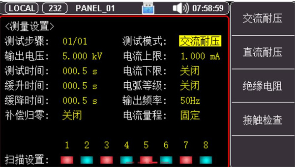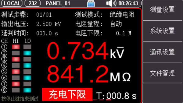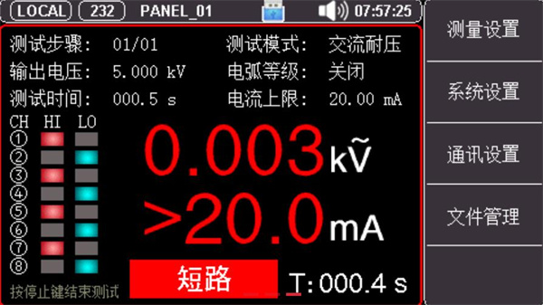 UT5320R-SxA系列采用4.3英寸真彩液晶顯示,具有4/8測試通道,通過各種實體按鍵以及數字鍵盤可以快速完成各種測試條件設置。機身使用高性能32位ARM微處理器控制,能夠實時測量被測體的各項安規參數,整機線路模塊間采用全隔離措施,抗干擾能力強,是集電氣強度(交/直流耐壓)、絕緣電阻、接觸檢測多項測試功能于一體的儀器。