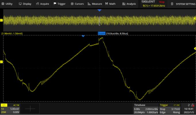 SDS2000X HD系列12-bit高分辨率可清楚地觀察到電源軌小信號細節。0.5%的直流增益精度,給小信號測量帶來前所未有的信心。