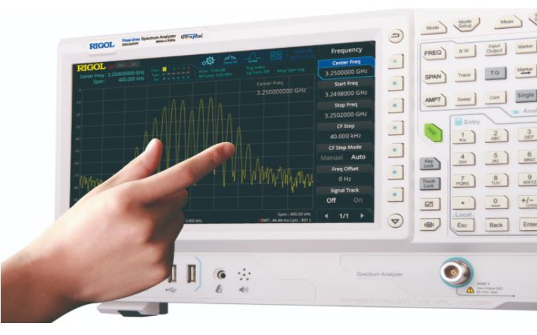 您可以使用RSA3000提供10.1英寸多點觸控電容屏進行快速的設置,并支持對波形進行拖動、展開、縮放等多種手勢操作,提供人性化交互體驗,最大程度解決您的時間。