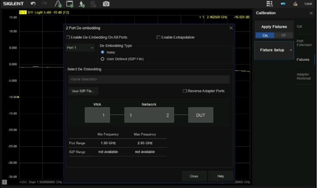 在微波射頻領域,如何有效消除有害的測試夾具效應是一大挑戰。比如在對SMD器件進行測試時需要特定的測試夾具實現測試儀器測試端與器件輸入端的轉接,導致測試結果中包含了測試夾具的特性。目前SNA5000X系列提供的去除測試夾具影響的方法主要有:端口延伸,端口匹配,端口阻抗轉換,去嵌入,適配器移除等。