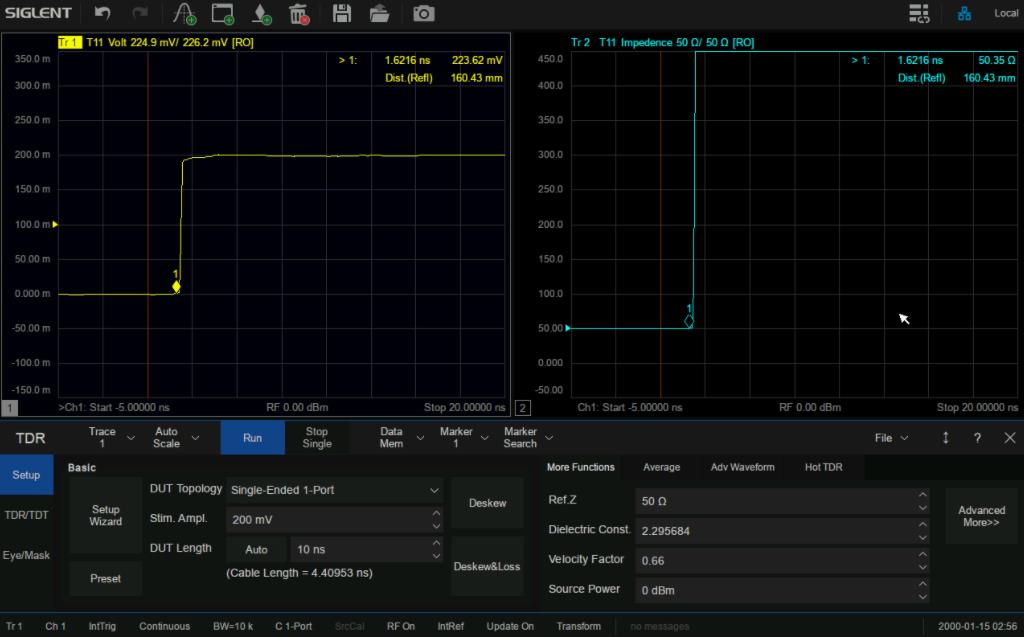 SNA5000X系列支持TDR時域反射計測量功能,可在時域對傳輸線的特征阻抗,時延等參數進行分析。
