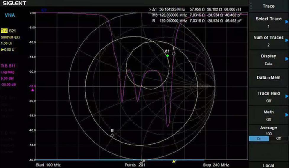 · 顯示反射/傳輸系數,回波/插入損耗,相位,群時延,駐波比,Smith圓圖,極坐標圓圖等多種格式;