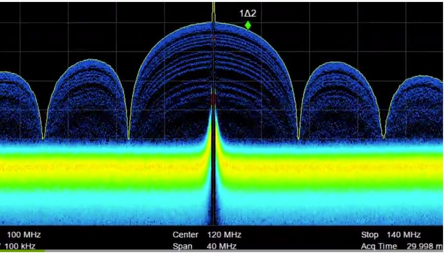 SSA3000X-R實時頻譜分析儀可設定頻率模板觸發功能,無縫采集分析被測信號(帶寬信號),適用于觀測分析小信號和跳頻信號。