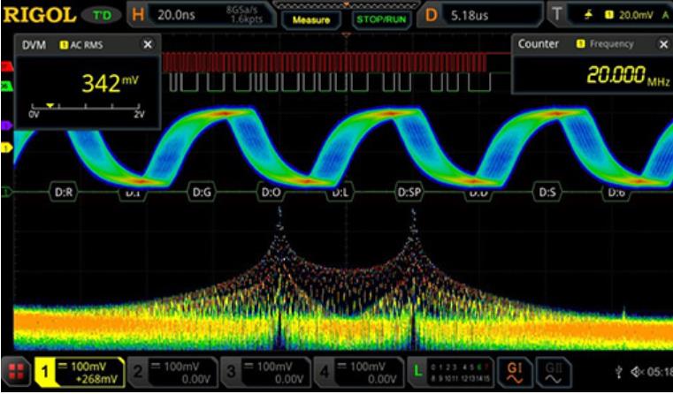 MSO5000系列提供了350MHz帶寬下最高8GSa/s的實時采樣率,約23倍的采樣帶寬比使其在同級別示波器產(chǎn)品中占據(jù)領(lǐng)先地位,同時具備200Mpts的超長波形存儲深度。