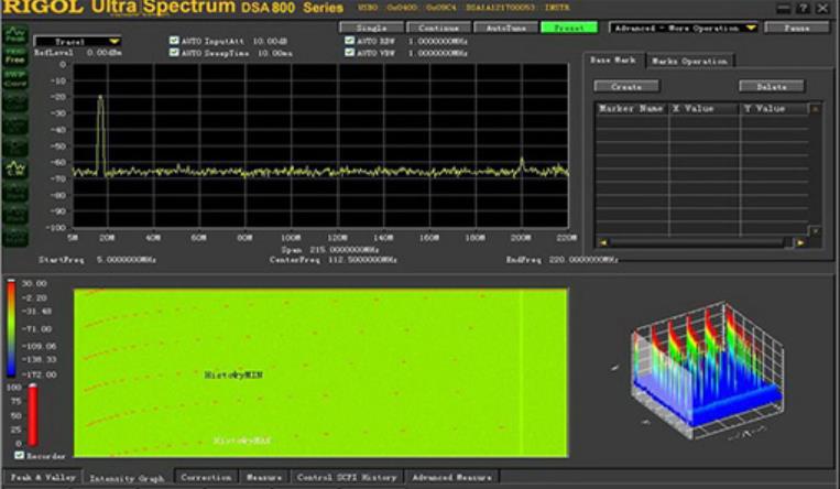 選配的Ultra Spectrum DSA系列頻譜儀軟件不但可以完成頻譜儀的控制,數據傳輸功能,還可以提供強大的光譜圖、瀑布圖等顯示和分析功能。