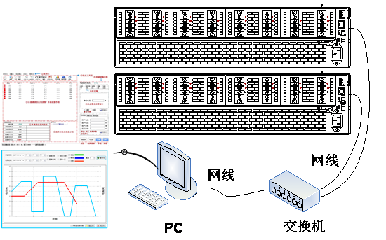 用戶可通過LAN或RS485接口進行多機集成,通過FT6110系統軟件可對負載系統進行所有功能操作、波形顯示及數據保存等功能。該軟件系統操作簡便,功能強大,使用者可輕易上手。