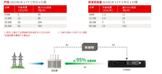 IT-M3900C具有能量回收功能,可以將電能無污染的回饋電網,回饋近95%。所有的回饋過程都是自動且安全的,IT-M3900C配備了自動電網檢測系統,實時檢測相電壓、頻率用于電網同步。不但可以節省電力、暖通空調和制冷設施的成本,減少噪音,而且有助于減少碳排放,保護環境。