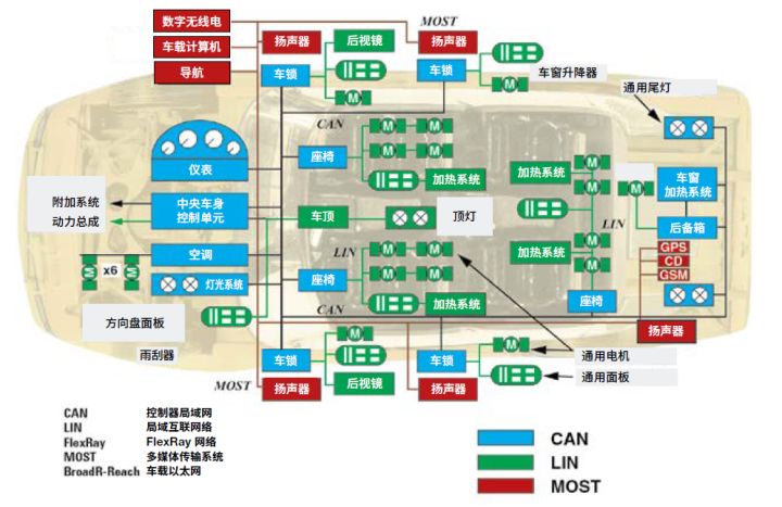 ? LIN:通訊速度為10-125K,主要應用于汽車大燈、燈光、門鎖、車窗及電動座椅