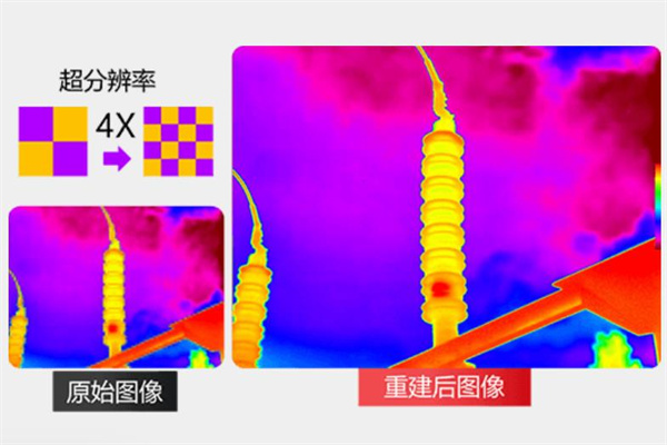 將低分辨率圖像通過特定算法增加圖像細節信息,超分辨率重建可將紅外圖像像素提升至原來的4倍,獲得高品質的成像效果