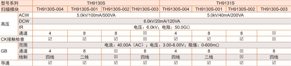 TH9130S/TH9131S系列多通道高功率耐壓接地測試儀包括以下幾種類型: