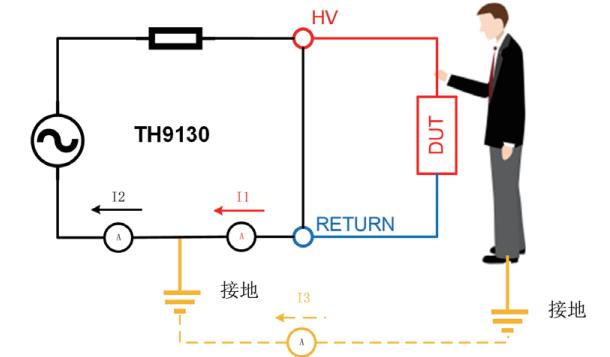 當操作人員觸電時,電流表分別測得不同數值,經過人體的電流I3= i2-i1, 當 i3過高時,即判定為觸電,會立即切斷輸出,保障 用戶的安全。